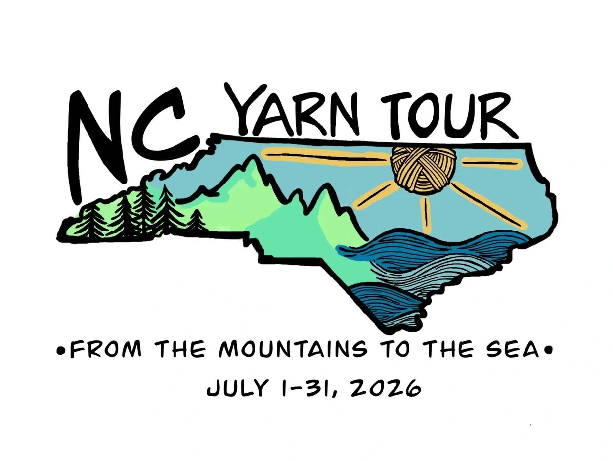 The 2026 NC Yarn Tour-From the Mountains to the Sea will take place from July 1-July 31, 2026. Interested participants must buy a custom tote bag to have full access to everything the NCYT offers. Totebags ($25) can be purchased Online. They will be available until July 1, 2026. Anyone who purchases one will receive a commemorative tote/swag bag, souvenir Guide Book, and custom patterns for the event, using mini skeins that can be purchased at each shop. Participants with a bag will have the opportunity to purchase NCYT-exclusive items at participating shops and be eligible for NCYT-only giveaways. The bags can be shipped (at an additional cost) or picked up at a shop, the shopper decides. The shopper will need their bag to access the exclusive items at the shops. At the end of the Tour, there will be a drawing for three Grand Prize Baskets. Any participant who has bought a Tour Totebag is eligible to win one of these baskets.